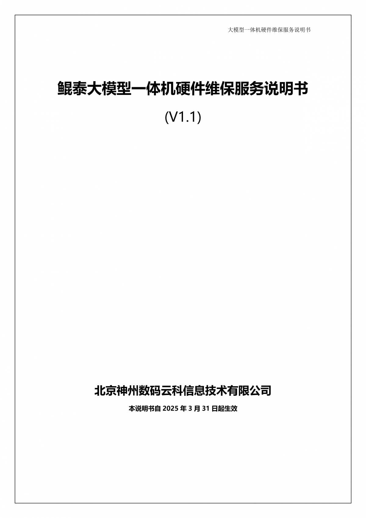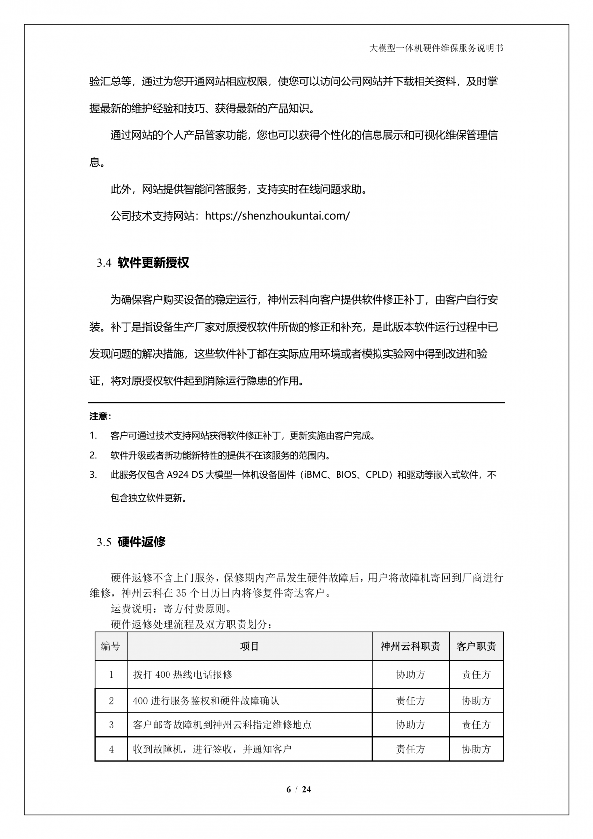 凯发一触即发A924 DS大模型一体机硬件维保服务说明书_V1.1